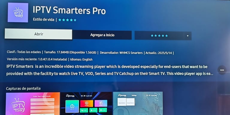 Ingresa a la tienda de aplicaciones de Samsung o LG y escribe "IPTV Smarters Pro"